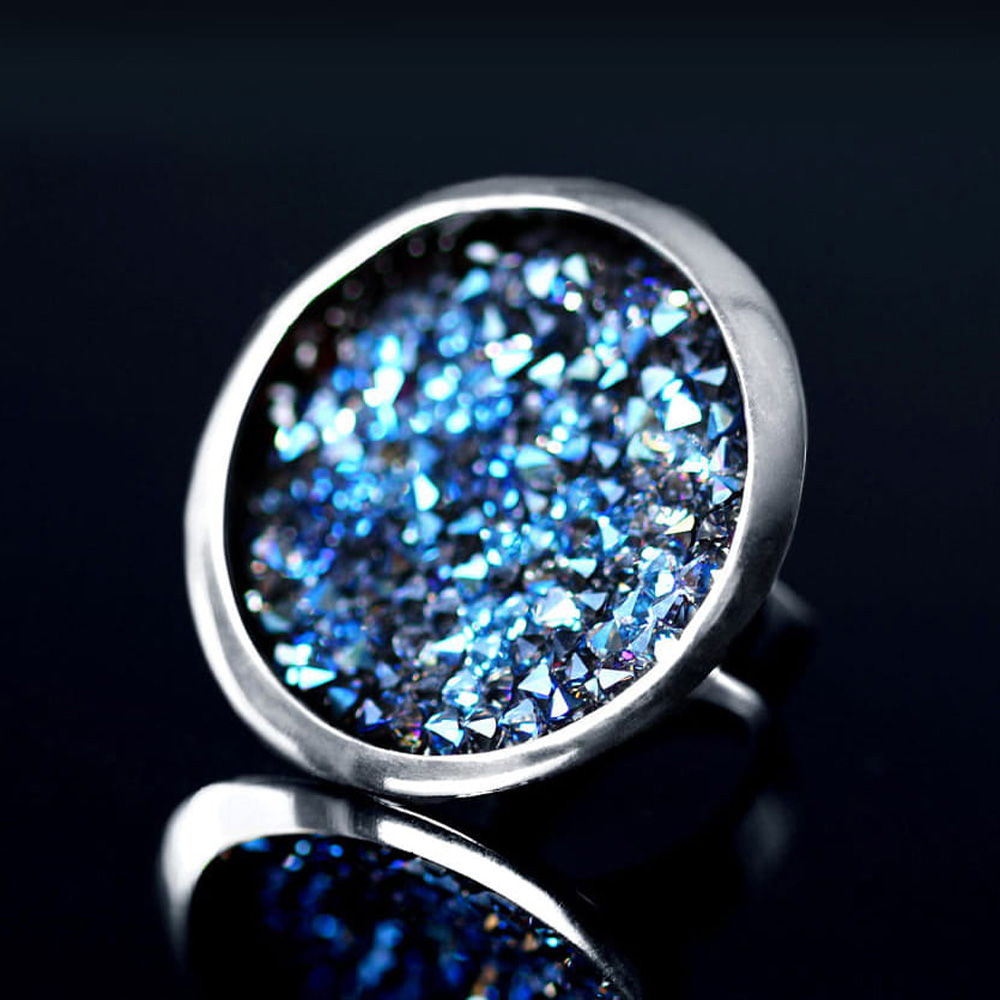 Duży efektowny pierścionek wysadzany kryształami Swarovski®